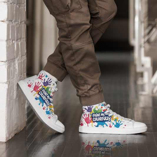 "I paint my world colorfully" High-Top Leinenschuhe für Herren