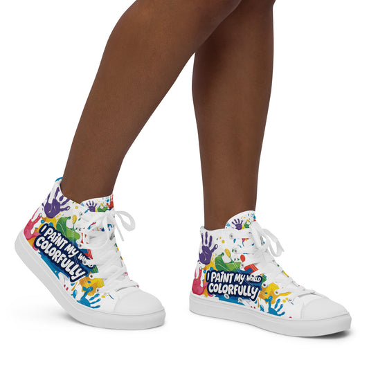 "I paint my world colorfully" High-Top Leinenschuhe für Damen