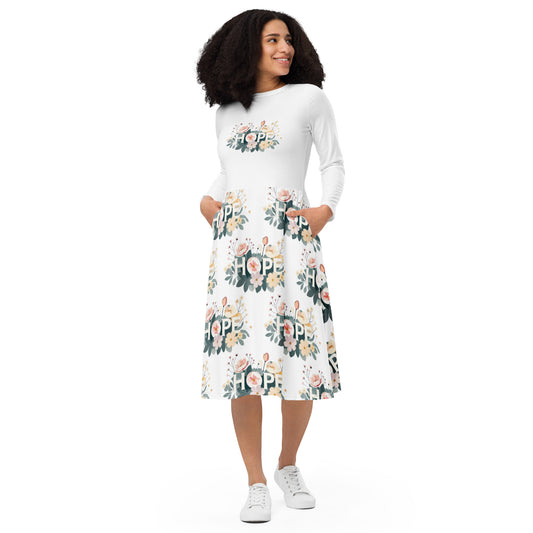 "Blumig" Langärmliges Midikleid mit Allover-Druck