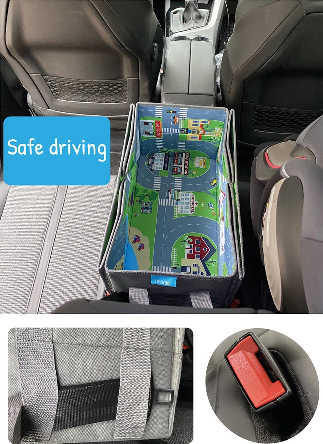 4-in-1 BOX MIT COOLEM MOTIV: Diese HECKBO Box kann in 2 verschiedene Größen gefaltet und als Auto Organizer Box, Spielteppich oder ganz einfach als Aufbewahrungskiste im Kinderzimmer oder unterwegs auf Reisen verwendet werden.