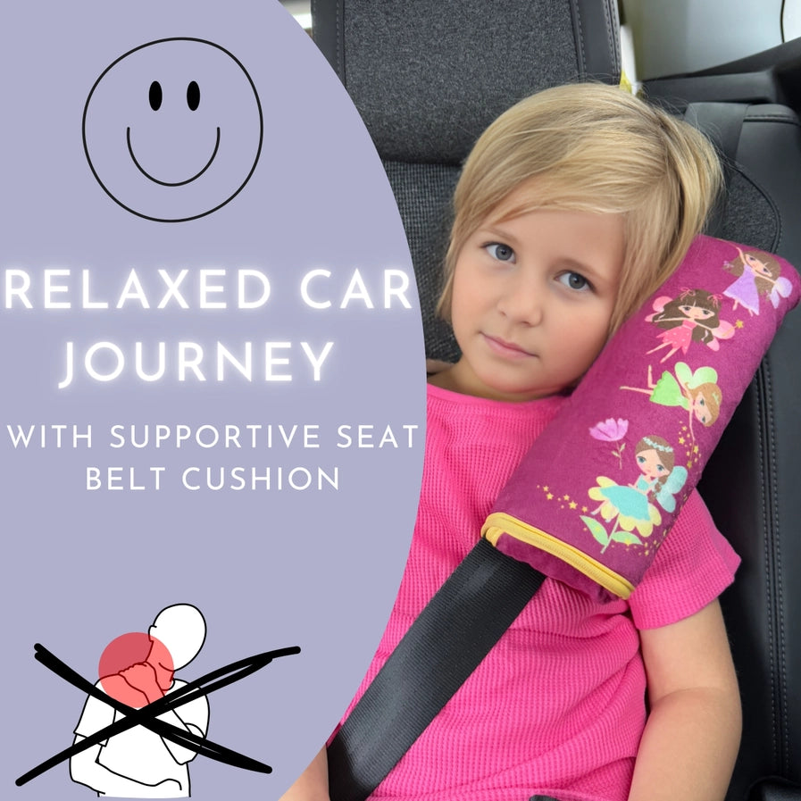 Das kuschelige Kissen verhindert das Abknicken des Kopfes und hält den Hals-/Nackenbereich beim Schlafen während der Autofahrt in einer ergonomischen Position. Das Gurtpolster hat eine Größe von 30x12 cm und eignet sich für Kinder ab etwa 3 Jahren.