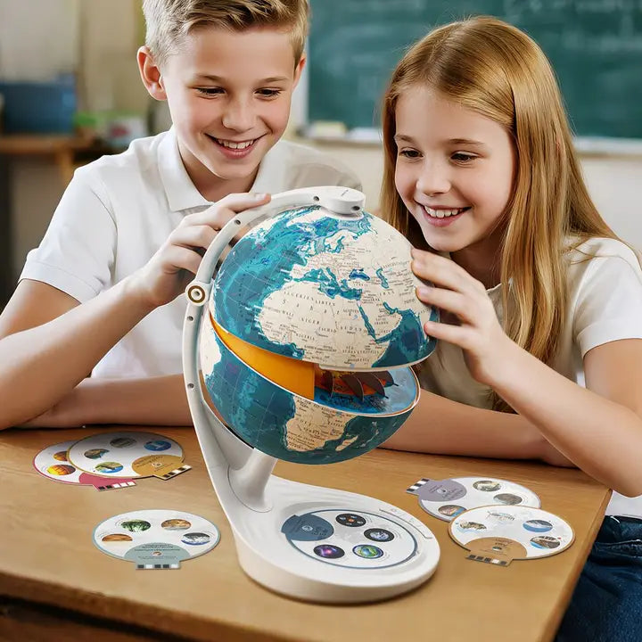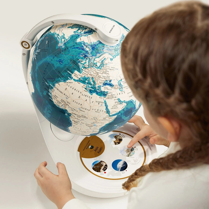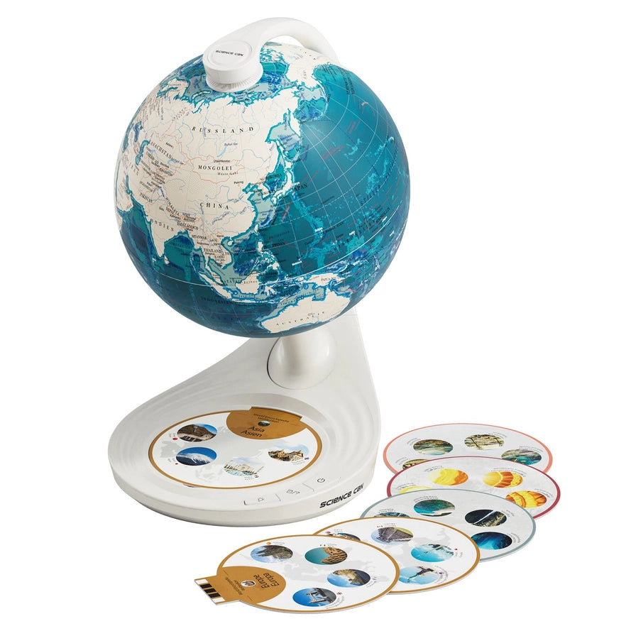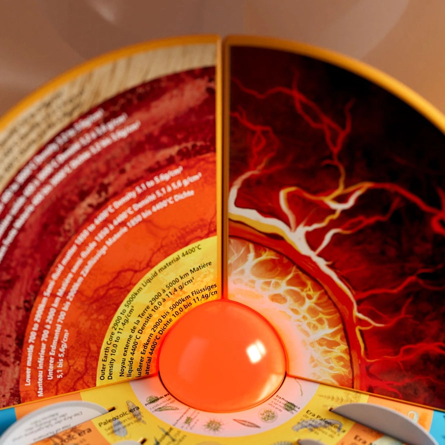 Der aufklappbare Globus enthält einen leuchtenden Erdkern.