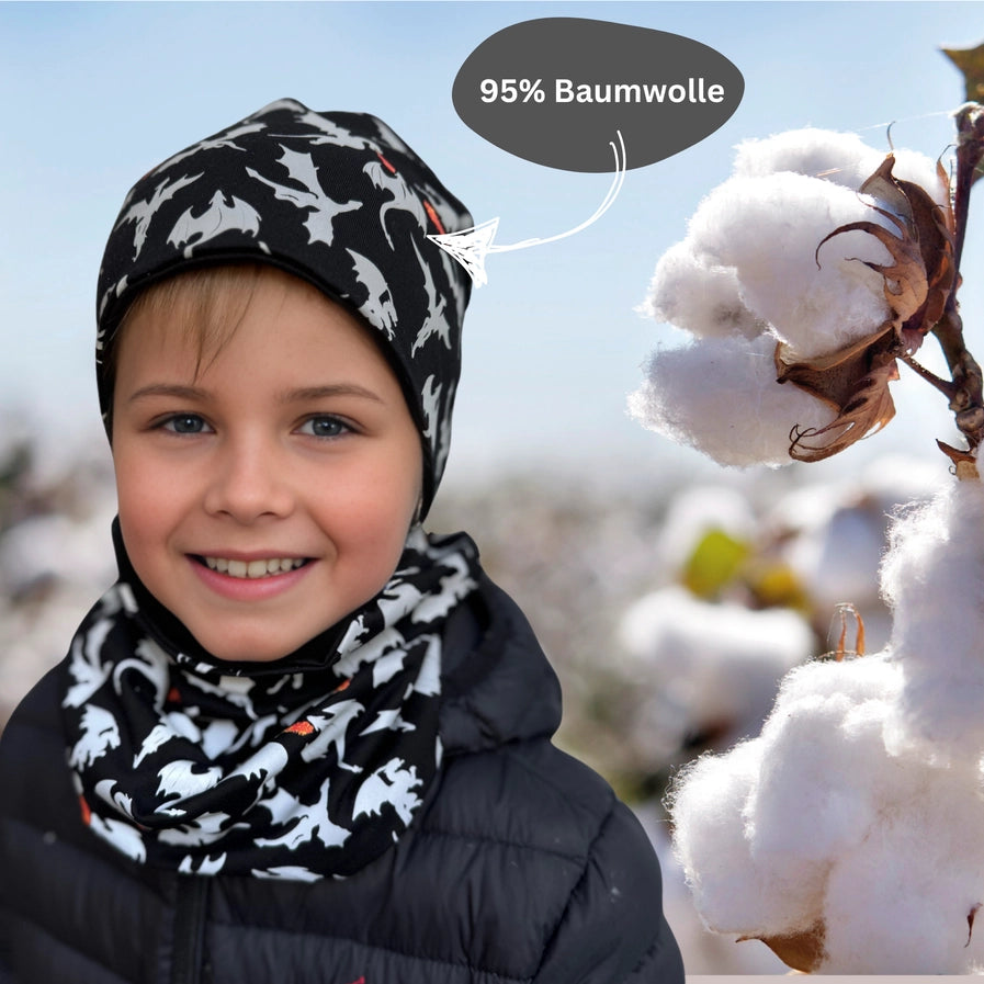 🐉 Mütze & Schal im Set – mit reflektierendem Drachen-Design
