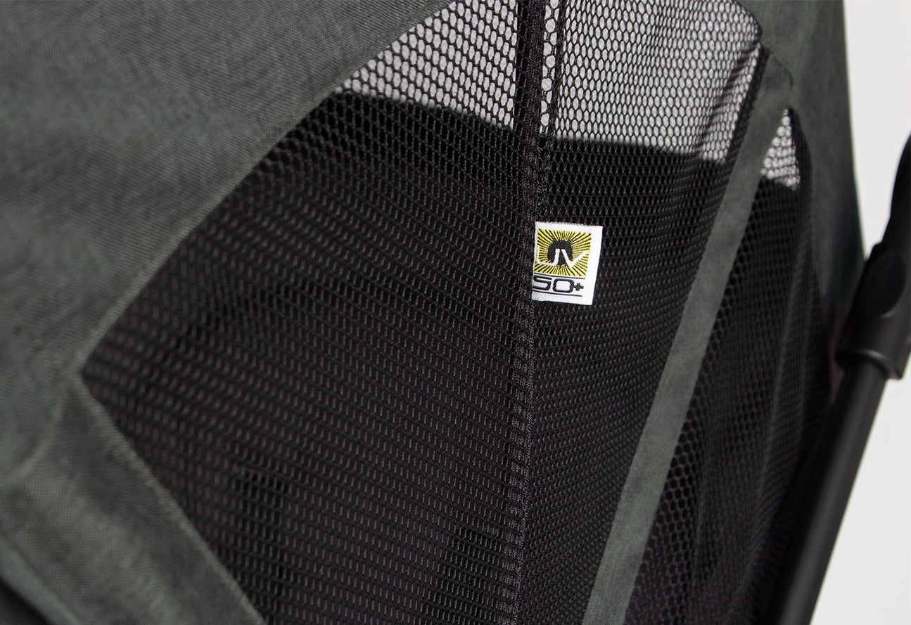 Das Sonnendach bietet UV 50+-Schutz vor Sonneneinwirkung.