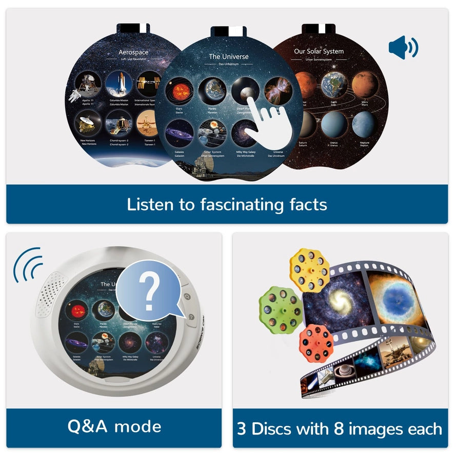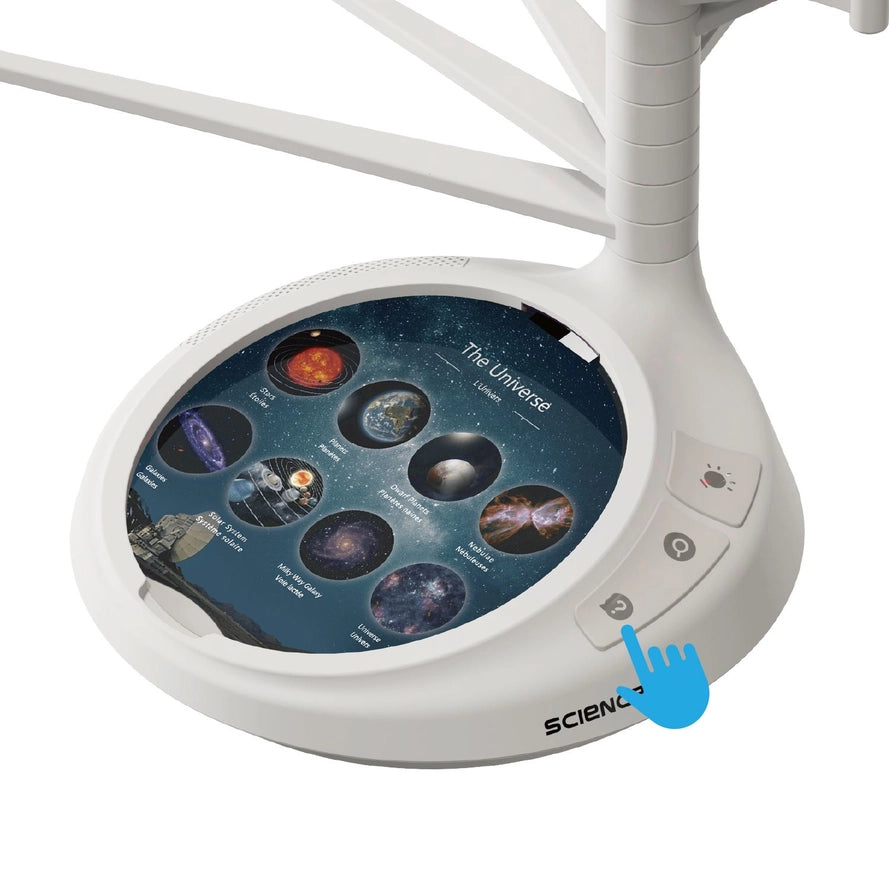 Als Projektor projiziert sie faszinierende Bilder von Himmelskörpern und Raumfahrt an Wände und Decken.