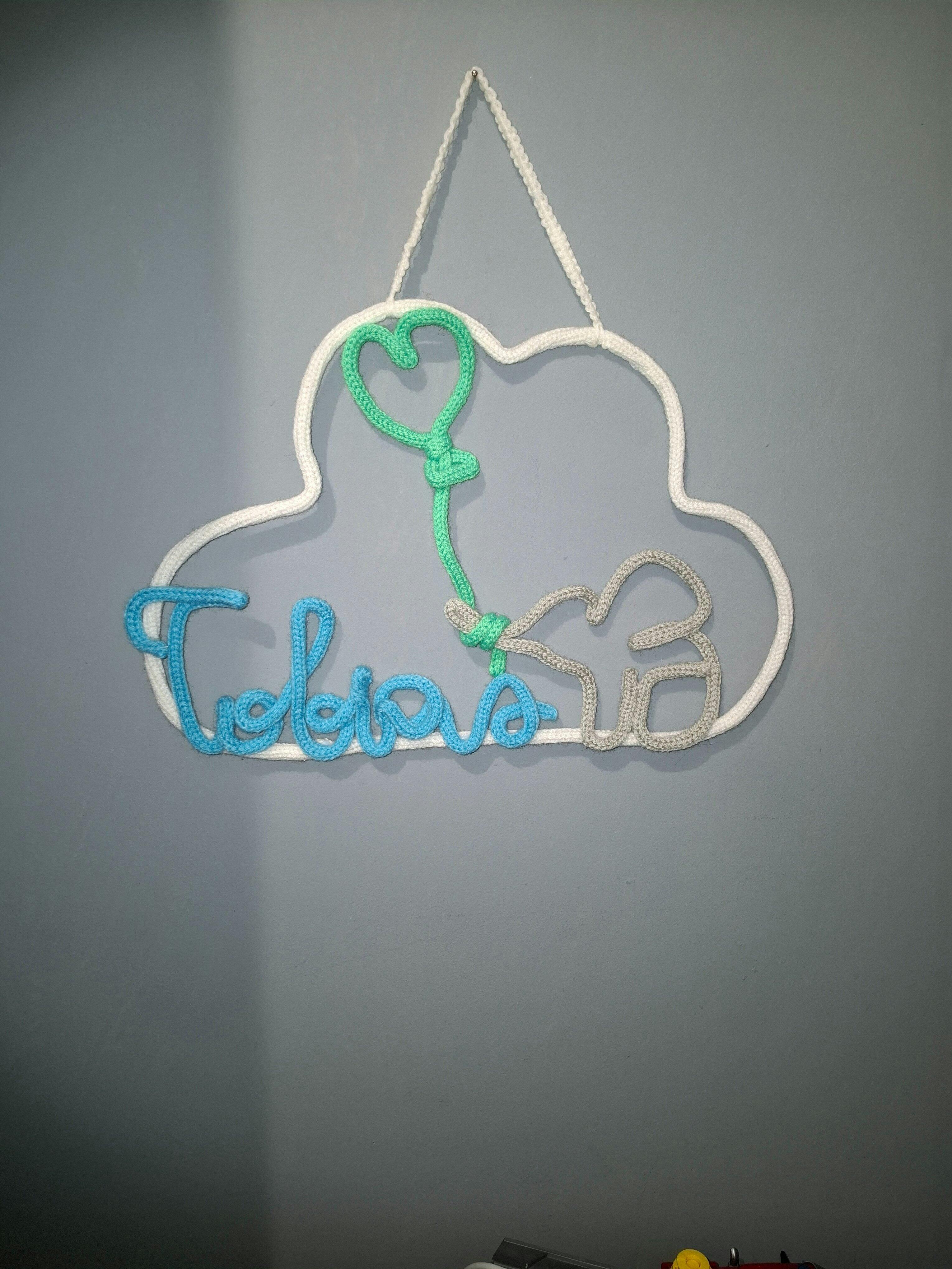 Dieser handgefertigte Wandanhänger aus weichem Garn ist ein echtes Unikat – liebevoll gebogen in Form eines süßen Elefanten, der ein Herzluftballon in den Himmel hält. Der Name deines kleinen Wunders wird kunstvoll eingearbeitet und macht dieses Dekostück zu einem ganz persönlichen Highlight im Kinderzimmer.